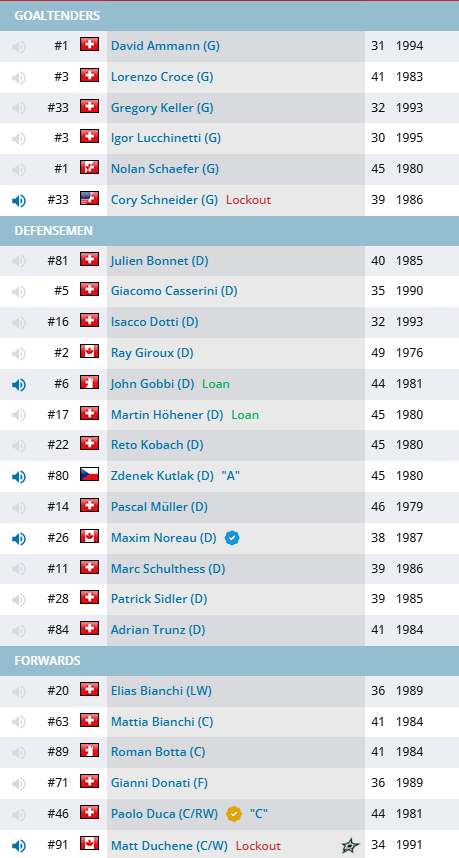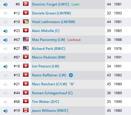 Mat Duchene , e Cory Schneider (portiere). Il primo dopo aver segnato una rete al suo debutto sparisce dalla circolazione, mentre gli altri due incantano il pubblico con la loro classe. Altro ritorno alla transenna, quello di Serge Pelletier che sostituisce Constantine. Si finisce nuovamente ai Playout ma si riesce ad evitare lo spareggio con la prima di B, sconfiggendo il Rapperswil in semifinale.Stranieri