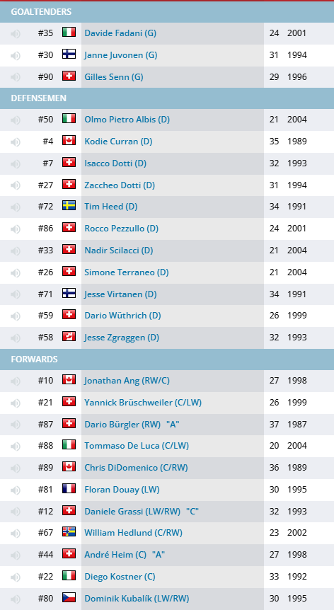 Stagione caratterizzata da movimenti di giocatori stranieri molto interessante. Dapprima la notizia che Kubalik non ricevendo un contratto in NHL ritorna ad Ambrì, Club che gli permise il salto in NHL anni orsono, e dopo un piccolo periodo di riambientamento contribuisce a suon di reti alla qualifica ai Play In. Altro movimento in corso di campionato, l'ingaggio di Chris DiDomenico (DiDo) dal Friborgo, che in cambio ingaggia dall'Ambrì Jakob Lilja. DiDo dimostzra subito la sua carica agonistica ed in linea con Maillet e Kubalik forma la Super linea che trascina l'Ambrì a soun di reti alla qualifica ai Play In. Tra gli stranieri vi è inoltre da segnalare l'ingaggio del difensore Curran e la partenza di Jonathan Ang per la Finlandi all' HV71.