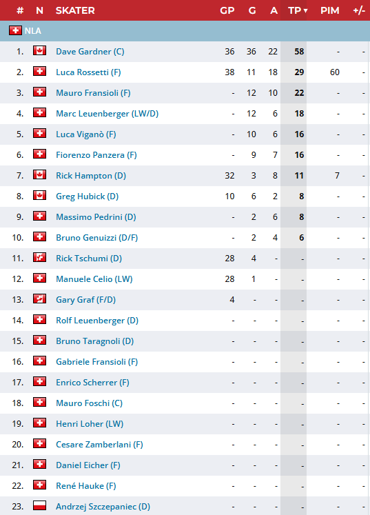 La campagna acquisti si completa con gli innesti del difensore Rolf Leuenberger e degli attaccanti Marc Leuenberger, Daniel Eicher e René Haucke, a cui in corso di stagione si aggiungeranno il giovanissimo Brenno Celio (il canadese della valle) e il roccioso Greg Hubick. Gli altri ci sono tutti, ad eccezione del vecchio leone Claudio Ticozzi, che appende i pattini al chiodo.