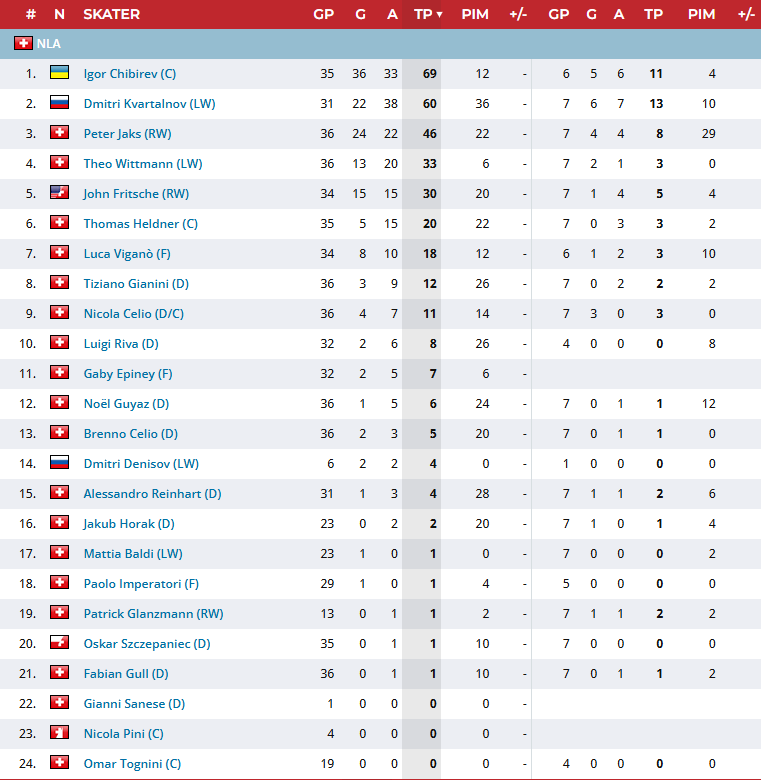 Ed è proprio grazie alle reti e agli assist dell'acquisto dell'ultimo minuto, Igor Chibirev, che l'Ambrì salva una stagione di alti e bassi. Un valore aggiunto che porta i biancoblù ad un' insperata semifinale contro il Kloten, dopo aver regolato nei quarti il Rapperswil. Finisce comunque tutto in tre partite, con gli "aviatori" ad involarsi in semifinale e poi conquistare l'ennesimo titolo consecutivo a spese del Berna e con lo Chaux de Fonds a ritrovare la A dopo un'eternità.