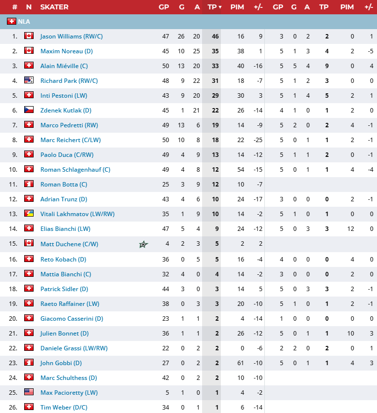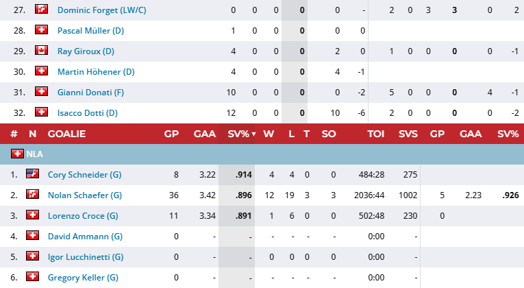 Mat Duchene , e Cory Schneider (portiere). Il primo dopo aver segnato una rete al suo debutto sparisce dalla circolazione, mentre gli altri due incantano il pubblico con la loro classe. Altro ritorno alla transenna, quello di Serge Pelletier che sostituisce Constantine. Si finisce nuovamente ai Playout ma si riesce ad evitare lo spareggio con la prima di B, sconfiggendo il Rapperswil in semifinale.Stranieri